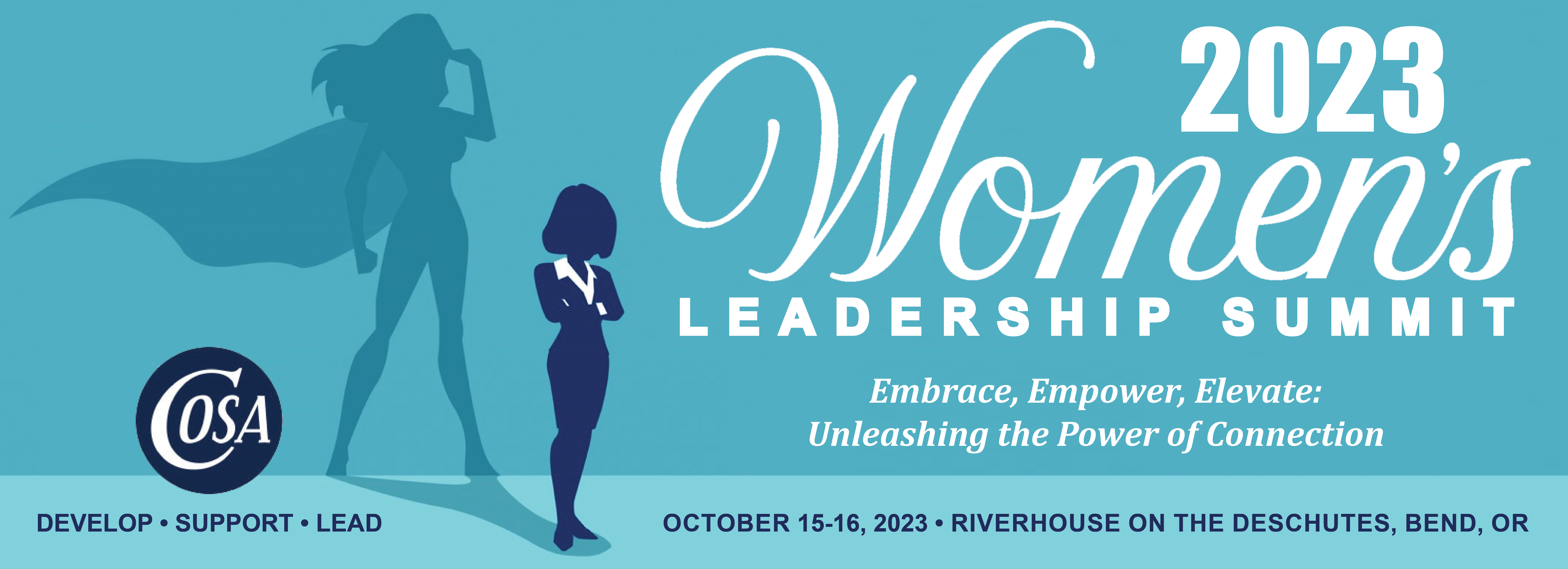 Join COSA, the Oregon Commission for Women (OCFW) and the Oregon Womens Foundation for the first ever “Women’s Leadership Summit” in Bend, Oregon on October 15 & 16, 2023. The theme for the conference is Embrace, Empower, Elevate: Unleashing the Power of Connection. Come engage with women leaders in education and other professional sectors on the power of women’s leadership and the importance of developing deep, cross-sector networks of support.