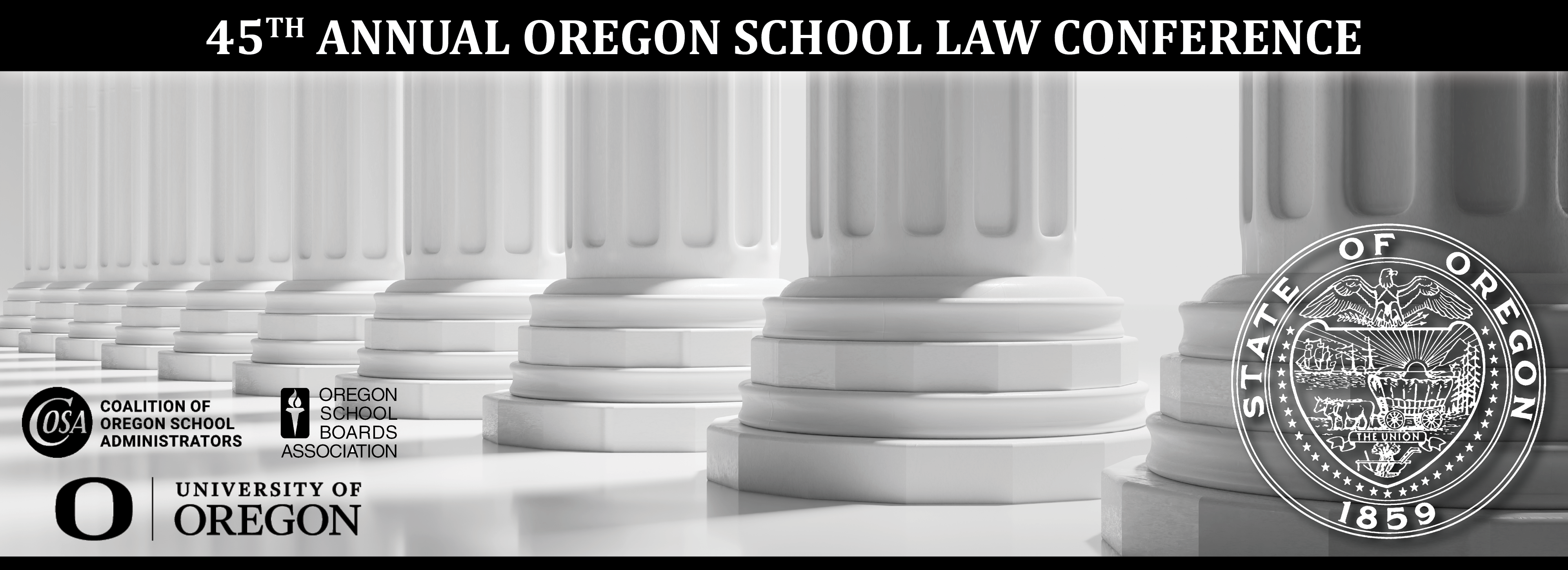 The Oregon School Law and Finance Seminar 2025 is a 2-credit course that meets the TSPC Oregon law and finance requirements for administrators coming to Oregon from another state. The class is held in conjunction with the Oregon School Law Conference and is designed to provide school personnel with up-to-date information on legal and financial issues critical to Oregon schools. Please note that additional work is required after attending the Oregon School Law Conference. The $550 fee is for the University of Oregon academic credit and does not include the Oregon School Law Conference registration fee. Students must register for BOTH the UO/COSA 2 credit class and separately for the COSA Law Conference. To register for the Oregon School Law & Finance Seminar click here.