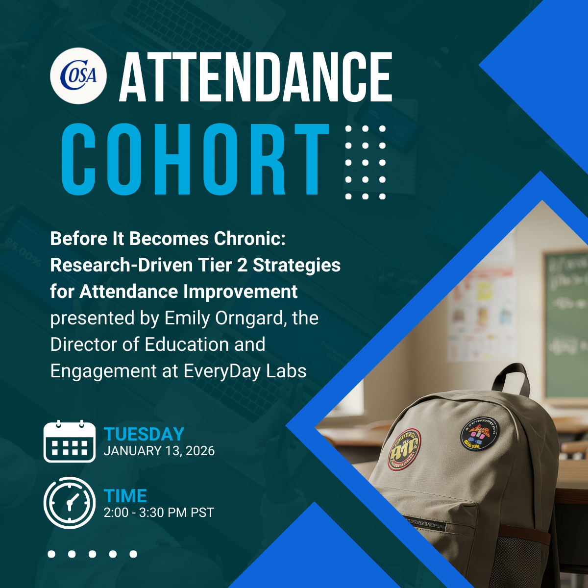The session will highlight emerging research districts should know about when working to reduce chronic absenteeism, with a focus on early Tier 2 interventions. Research will be shared on how to best implement evidence-based strategies for identifying students showing early warning signs and for intervening before absences become chronic. Concrete strategies districts can implement immediately will be shared.