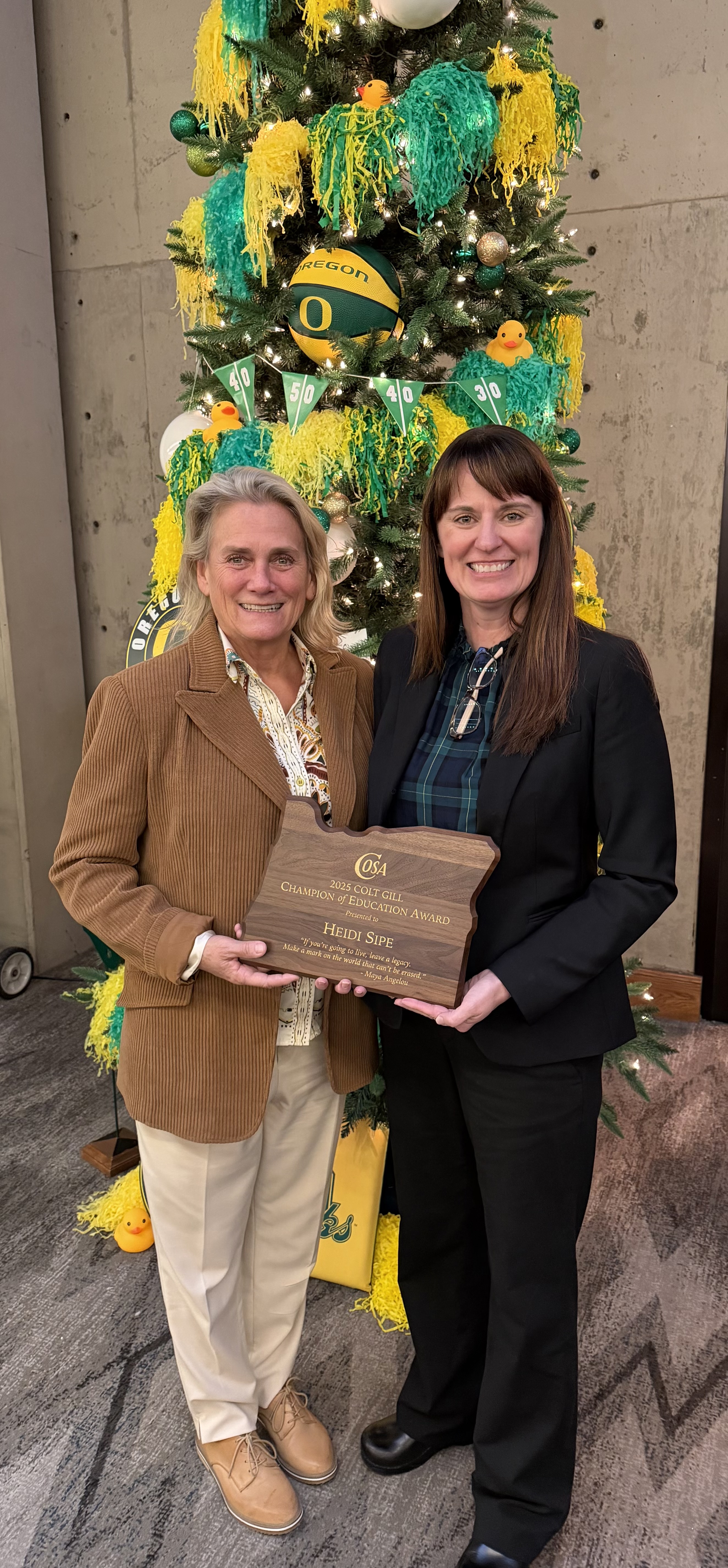 The Colt Gill Leadership Award is named for Colt Gill and honors the legacy of a steady and courageous leader who served Lane County communities and later the entire state as the Director of the Oregon Department of Education (ODE). The award celebrates individuals who demonstrate exceptional impact, a tireless work ethic in areas of statewide significance, strong advocacy for educators, and steadfast leadership through complex circumstances — all qualities that define Sipe’s career and ongoing contributions to Oregon’s public schools.